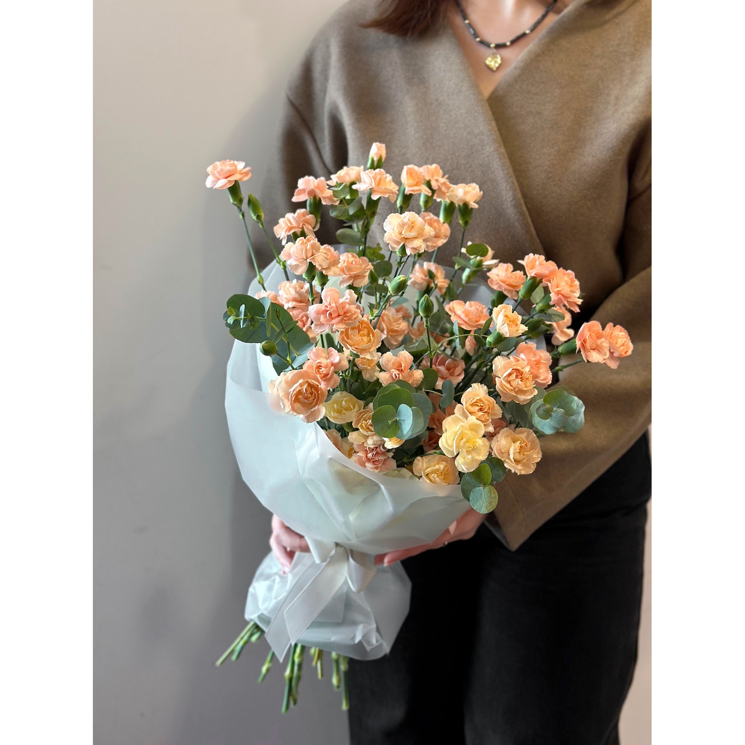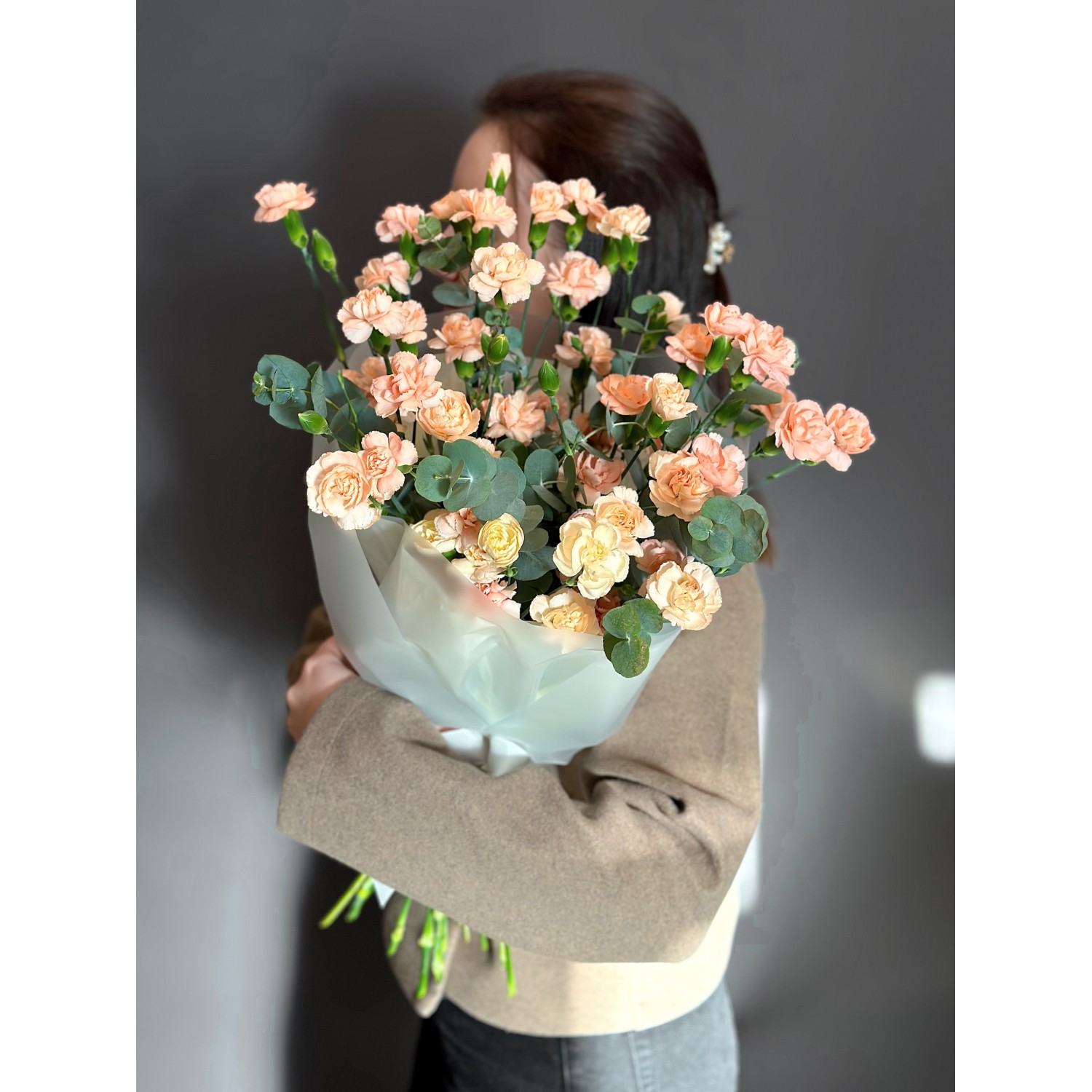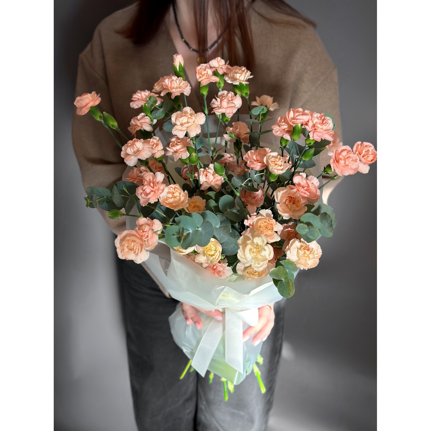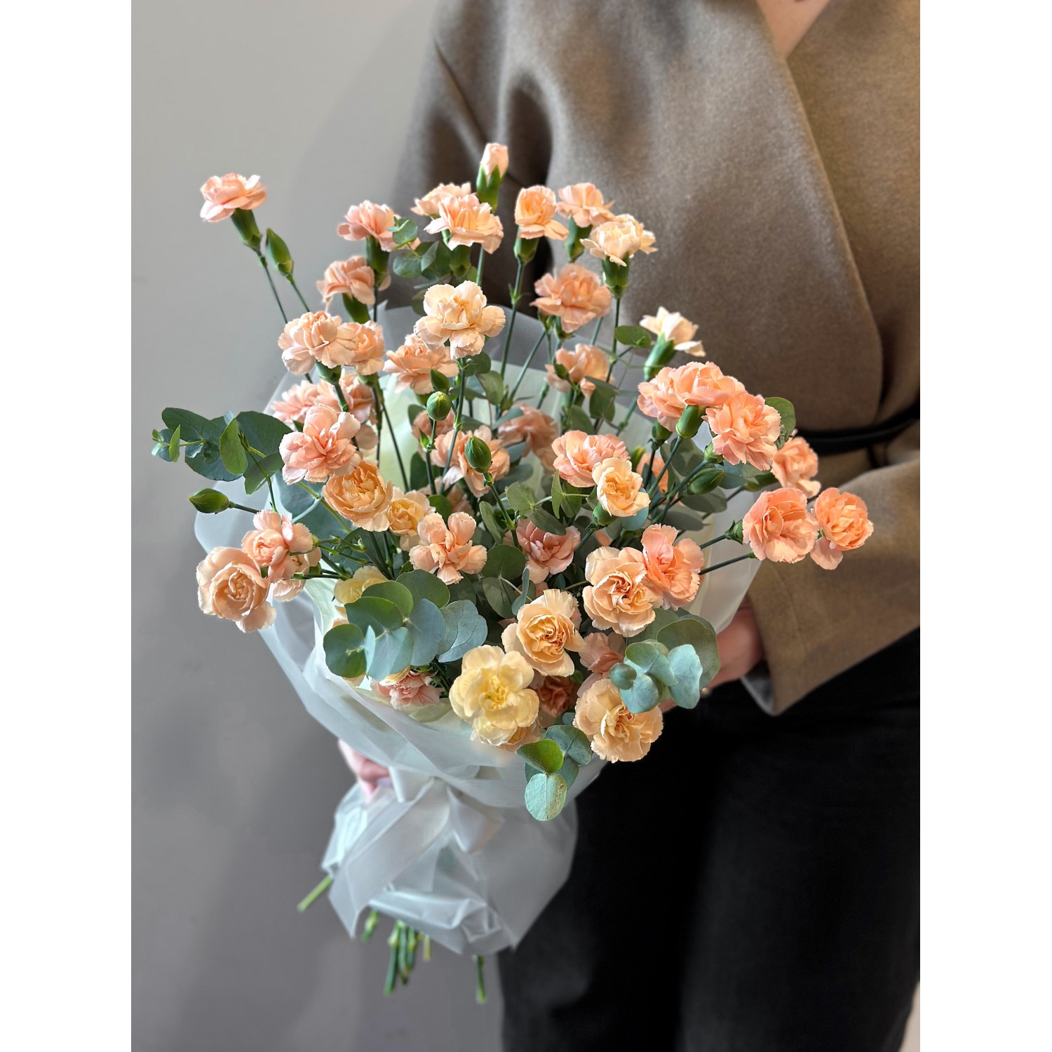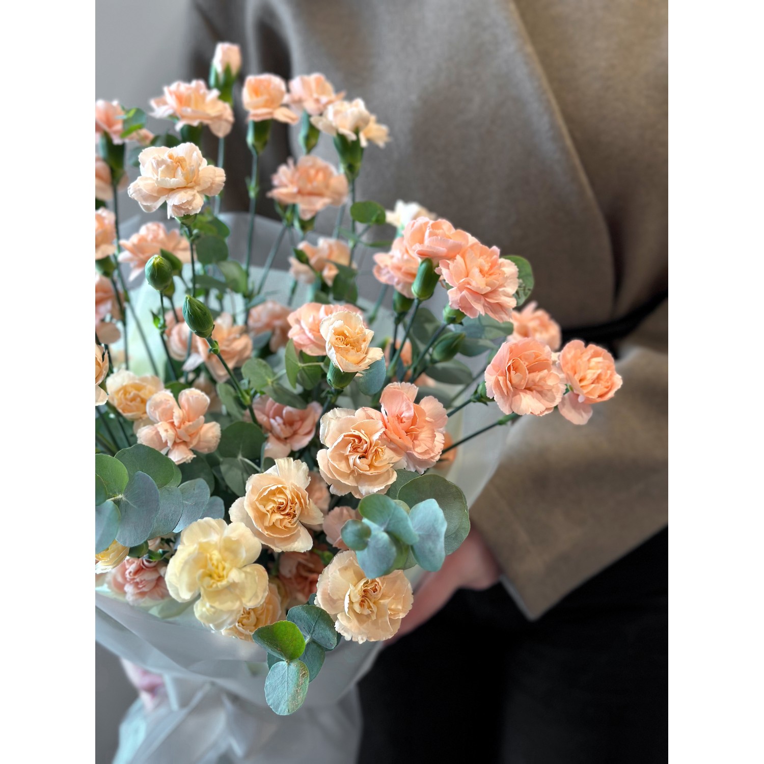 Букет №237 из сортовой кустовой гвоздики персикового цвета